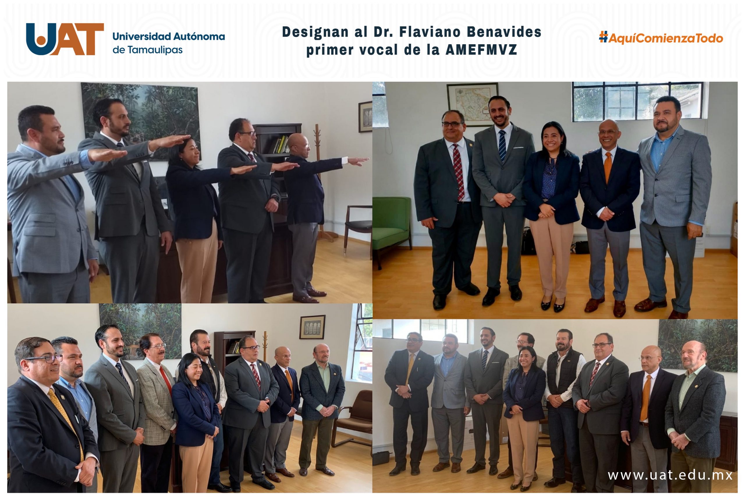 En su oportunidad, el C.P. Guillermo Mendoza Cavazos, rector de la UAT, le extendió su felicitación al Dr. Flaviano Benavides por su incorporación a dicha asociación, lo que permitirá a la casa de estudios fortalecer la vinculación y los esfuerzos nacionales para mejorar la calidad de la enseñanza e investigación de la medicina veterinaria y zootecnia.