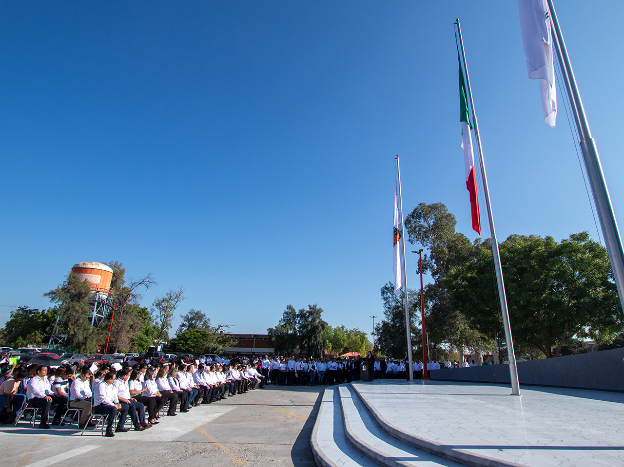 En su mensaje a la comunidad universitaria, el rector destacó la importancia de preservar el respeto a los símbolos patrios, y reiteró el compromiso de la UAT por engrandecer a la nación a través de la educación.