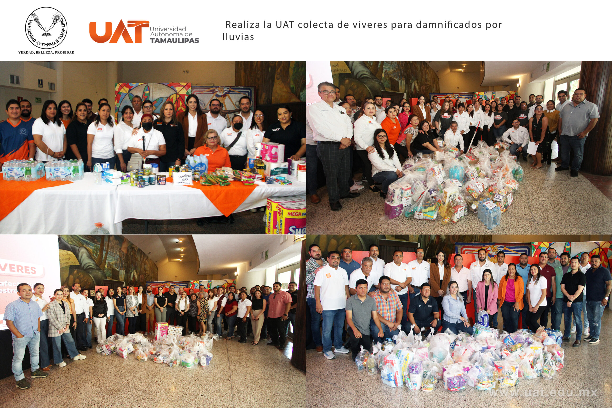 Durante este evento, representantes de las diferentes instancias de la UAT y voluntarios se encargaron de recibir los víveres recolectados, los cuales serán entregados en manos de aquellos que más lo requieren en las áreas afectadas por las fuertes lluvias.