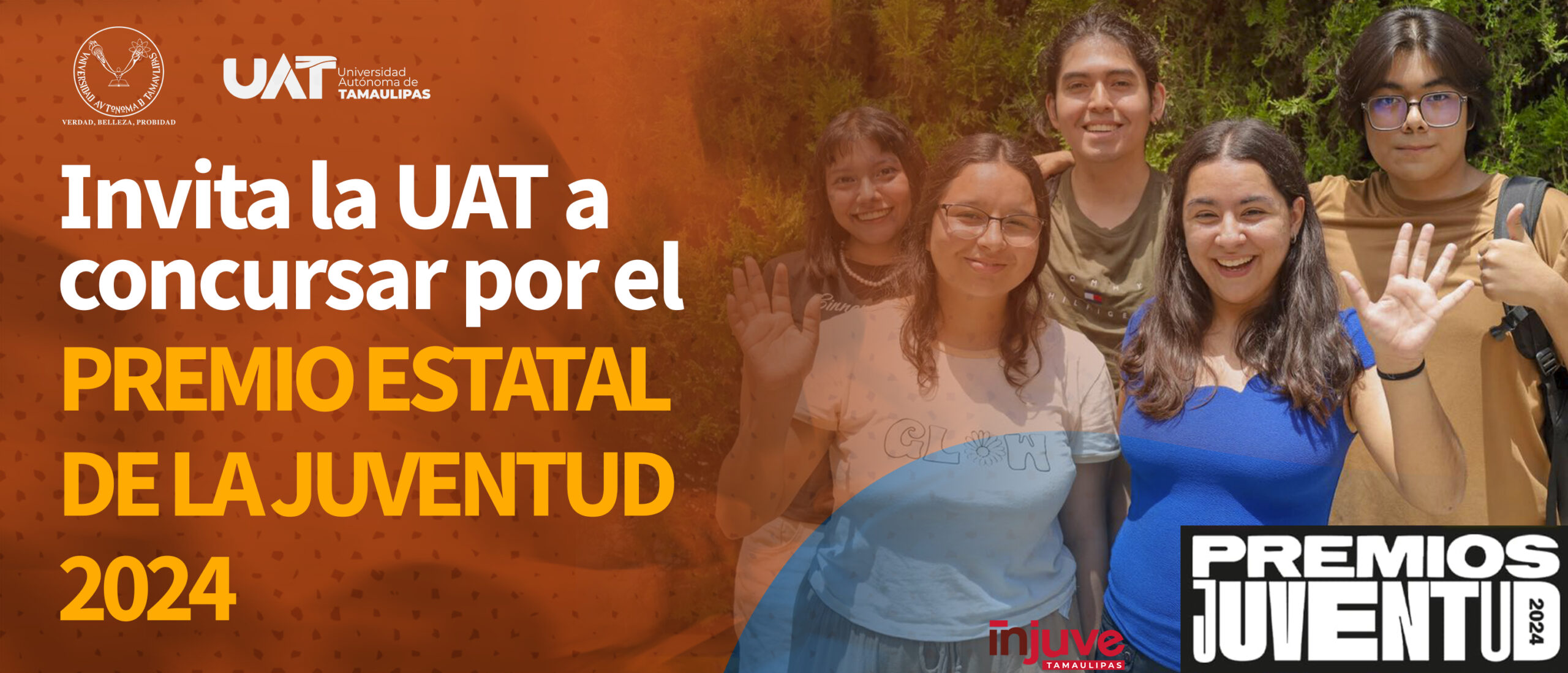 La Universidad Autónoma de Tamaulipas (UAT) hace extensiva la invitación a participar en la convocatoria del Premio Estatal de la Juventud 2024, una iniciativa del Gobierno del Estado a través de la Secretaría del Trabajo y Previsión Social y el Instituto de la Juventud de Tamaulipas, que busca reconocer el talento y contribuciones de las y los jóvenes en nuestra sociedad.