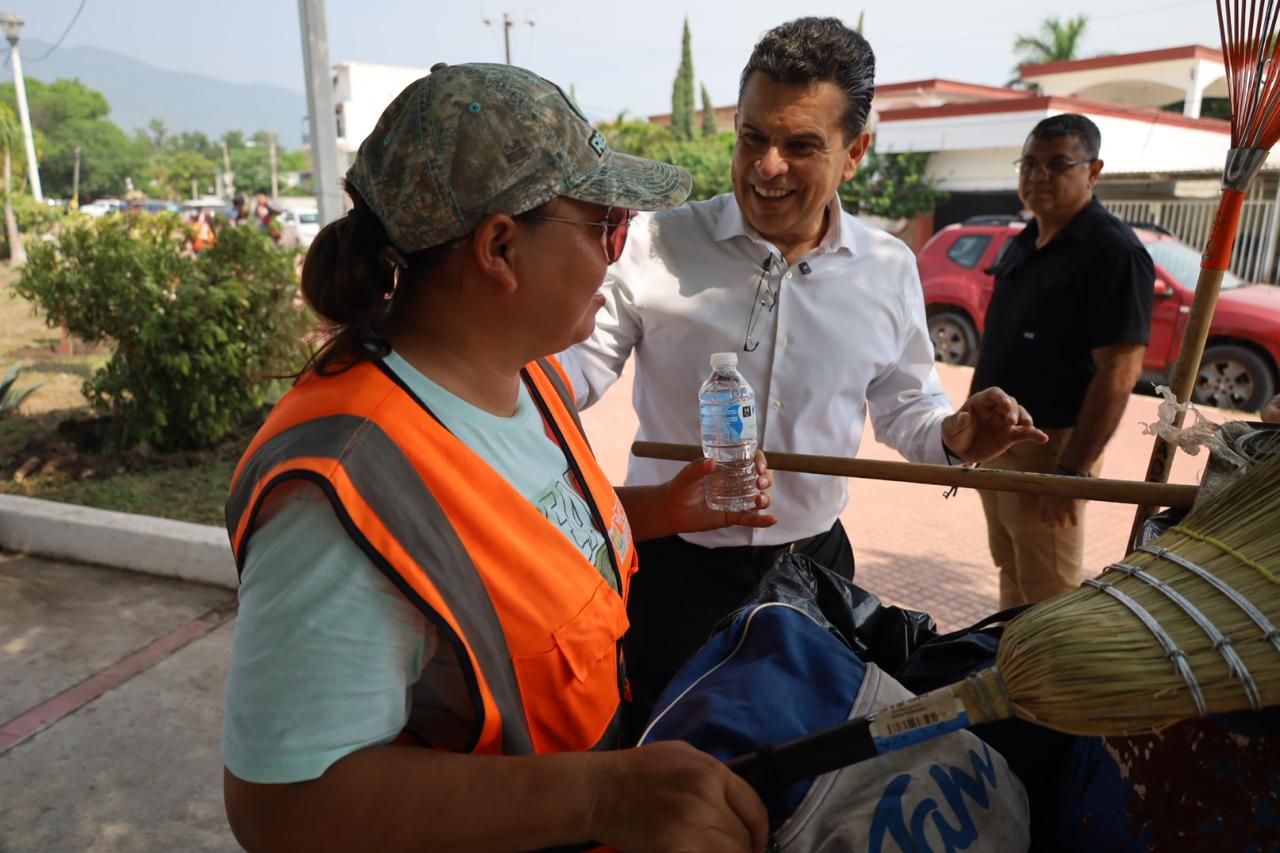 Por la mañana, visitó el sector que comprende la Estación del Ferrocarril, dónde personal de Parques y Jardines de la Secretaría de Servicios Públicos restableció la imagen de la Plaza de los Héroes y calles contiguas con trabajos de chapoleo, poda de árboles, barrido manual, pinta de cordones y bancas para disfrute de los habitantes.